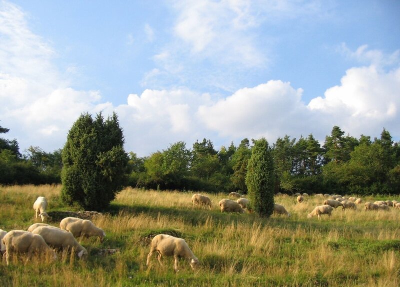 Darüber hinaus leistet Juradistl-Lamm einen wichtigen Beitrag zur Artenvielfalt. Die Tiere beweiden schonend die charakteristischen Magerrasenhänge der Juratäler, etwa im Landkreis Schwandorf am Münchshofener Berg oder auf den Schafhängen bei Premberg. Diese besonderen Lebensräume beherbergen zahlreiche seltene Pflanzen wie Küchenschelle, Feldthymian, Silberdistel und das Brand-Knabenkraut, eine heimische Orchideenart. Auch Wildbienen und spezialisierte Schmetterlinge finden hier Nahrung und Schutz. Als wertvolle Biotope verbinden Magerrasenflächen verschiedene Naturräume miteinander – ganz im Sinne des Juradistl-Mottos: Naturschutz kennt keine Grenzen.